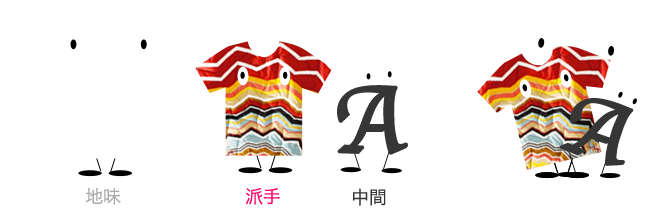 こちらも、「派手」「中間」「地味」がそれぞれひとつずつ、となりました。